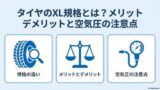 また、同じタイヤサイズでも「エクストラロード(XL)規格」などの強化タイヤを選ぶと、空気圧を高めることで負荷能力を引き上げられるケースもあります。